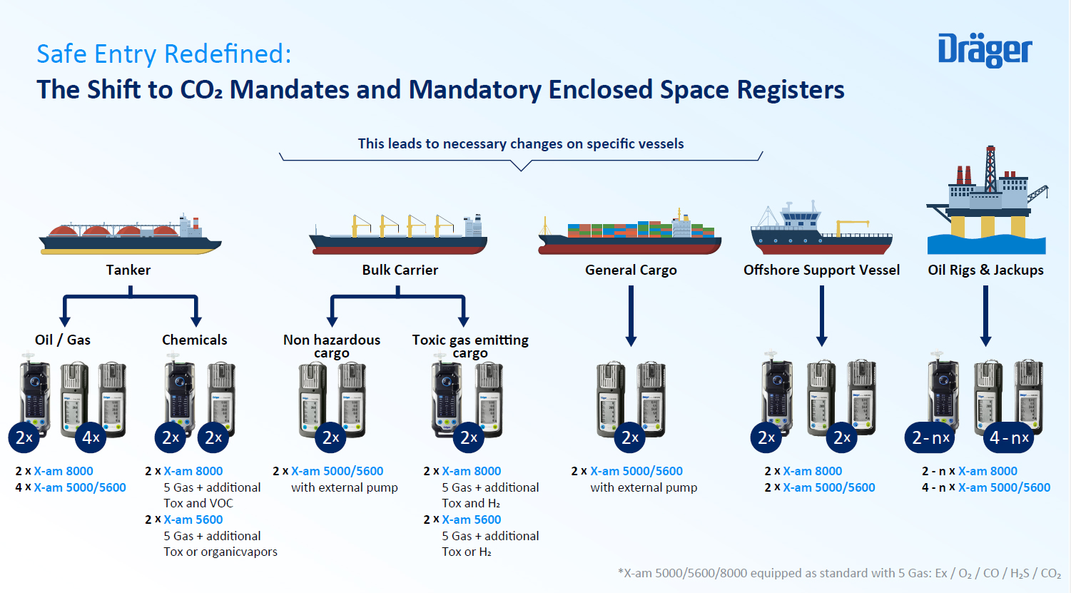Een handig overzicht die elk schip helpt bij het vinden van de meest geschikte apparatuur van Dräger.
