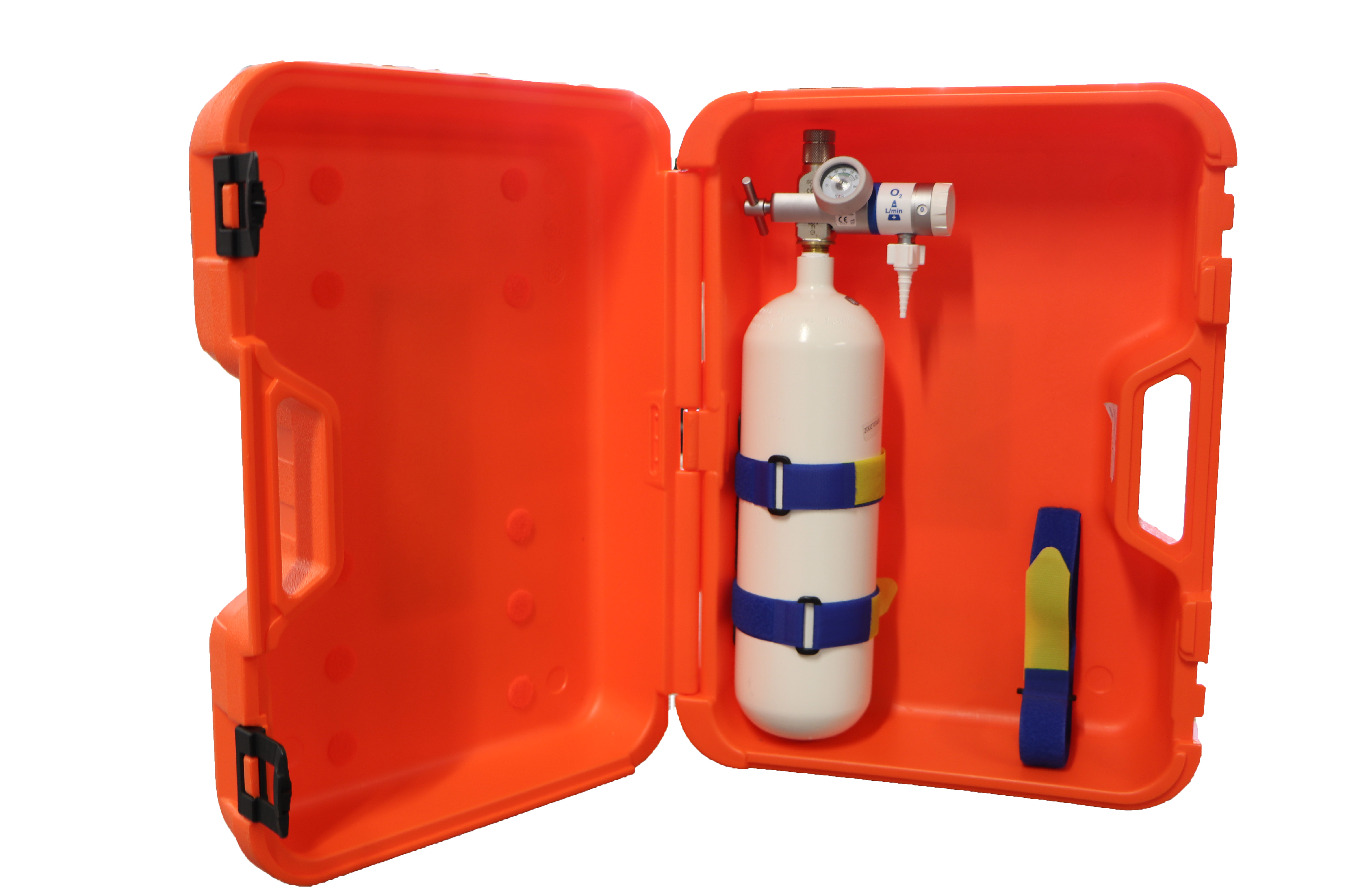 Binnen de zuurstofkoffer wordt geen ruimte verspild, want alle inhoud is ergonomisch ingericht. Het pakket bevat alles wat in een noodsituatie vereist is - het belangrijkste compenent is een 2.0 L zuurstof cilinder die is uitgerust met een RPV drukregelaar die bescherming biedt tegen vervuiling. Deze is voorzien van twee 5 bar uitgangen en een inhalatiepunt die instelbaar is in stappen van 0-30 l / min met behulp van de outputregelaar.